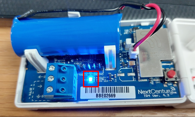 - The LED will change from red to blue, confirming the transmitter is now set to Pulse mode.