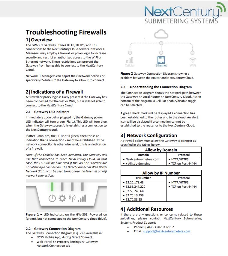 Next Century Troubleshooting System Offline OVERVIEW: The Next Century Gateway has integrated Ethernet, Wifi, and Cellular capabilities. I have broken down each connection with its own troubleshooting guide. Before that however, there is a basic ...